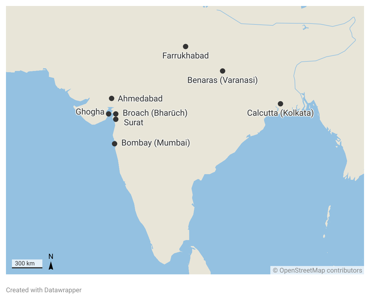 Established in 1612, the Surat factory oversaw a network of agencies at Gogha, Ahmedabad, Broach, Bombay and overseas at Gombroon and Basra. These agencies were important in ensuring steady and regular supplies of textiles and export items for the English East India Company’s (EIC) official investment. These agencies also helped the Surat factory to collect and compile information on textiles, money market and indigenous credit practices that came in for scrutiny and occasional regulation. One such practice was the આન્ટ.